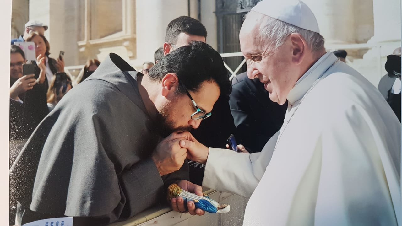 Na ocasião, frei Gilson pode cumprimentar o Santo Padre, que abençoou uma imagem de Nossa Senhora das Graças da Medalha Milagrosa, objeto de devoção dos mílites a ela consagrados.