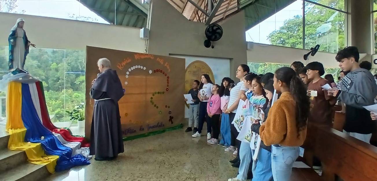 Em um clima de alegria, fé e comunhão, o Oratório Imaculada Conceição e São Maximiliano Maria Kolbe, na sede da Milícia da Imaculada, em São Bernardo do Campo (SP), foi tomado por vozes infantis na manhã deste sábado, 18 de outubro. Centenas de crianças vindas de grupos de catequese de diferentes paróquias da Diocese de Santo André se reuniram para rezar o Rosário Missionário com o tema “Corações Missionários unidos em oração com Maria pela paz”.